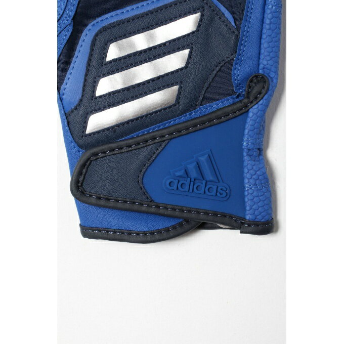 手の甲にBaseball 3 Stripes 面ファスナー式手首のバンドの上に立体感のあるアディダスのバッジ オブ スポーツ ■素材:ポリウレタン100%(型押し合成皮革・ストレッチニット ) ■原産国:インドネシア 検索ワード:左打者用 右打者用 バッティング手袋 バッティンググラブ 一般用
