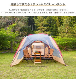 テント タープ ドーム型 セット お買い得 4人用 5人用 連結 キャンプ アウトドア レジャー おしゃれ 人気 スクリーンタープ メッシュ 日よけ 虫よけ サンシェード 2ルーム 大型 簡単 防水 軽量 初心者 sokos【テント4人用&スクリーンテント】【送料無料】【あす楽対応】