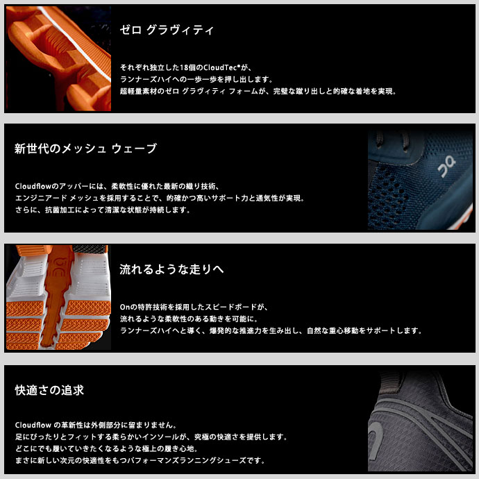 オンのランニングシューズ! ●軽くて反発力に優れた、履き心地抜群のシューズ! ●18個のCloudTecがそれぞれ独立したクッションとなり、足運びを助けます。