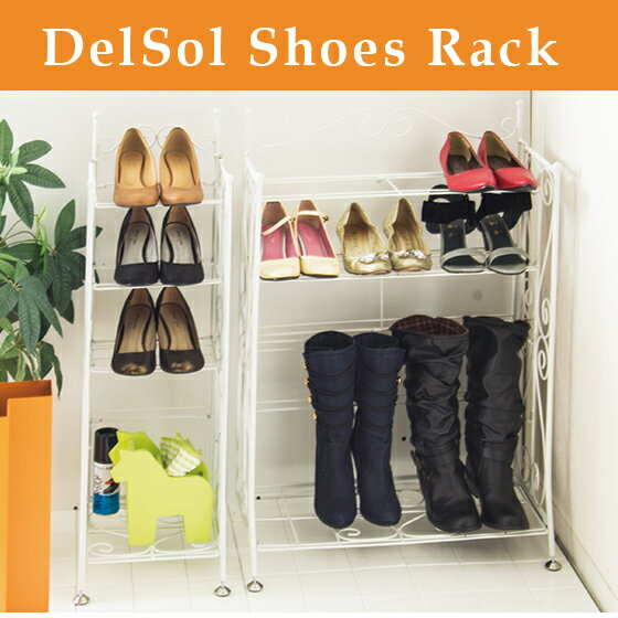 商品説明 DelSolシューズラックは、女性のパンプスの場合、1段に1足ずつ計5足が収納できるコンパクトサイズと、1段に3足づつ計15足が収納できるワイドサイズをご用意。