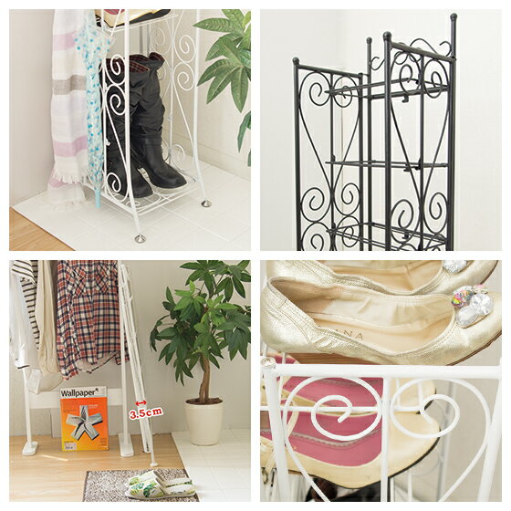 ロングブーツ(50cm)も収納できてびっくり! アイアンなので、傘や小物などを引っかけたり、シューズケア用品を置いたり、ご自分のセンスでアレンジいただけます。